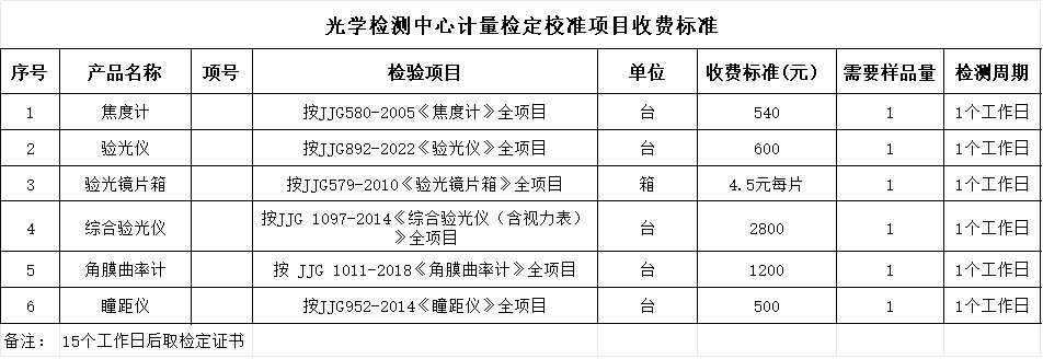 光學(xué)檢測中心計(jì)量檢定校準(zhǔn)項(xiàng)目收費(fèi)標(biāo)準(zhǔn)
